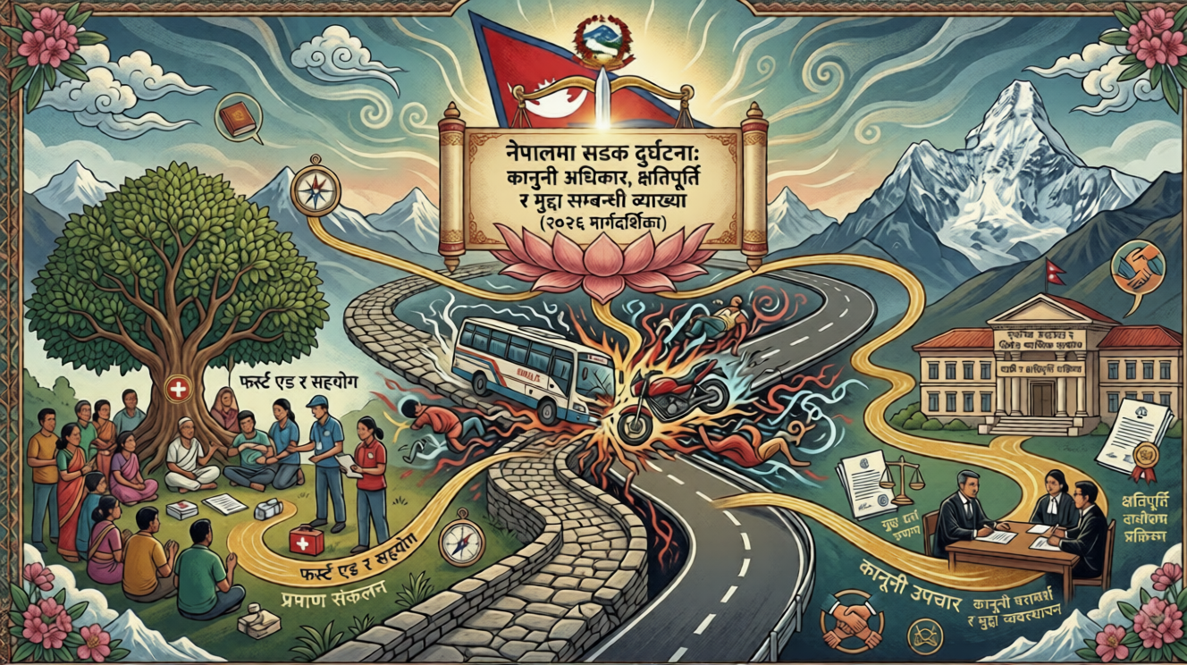 यस मार्गदर्शिकाले नेपालमा सडक दुर्घटनालाई कानुनले कसरी हेर्छ, पीडितले के गर्नुपर्छ, र अदालतहरूले यस्ता मुद्दाहरू कसरी व्याख्या गर्छन् भन्ने स्पष्ट पार्छ।